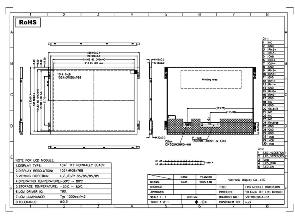 এই ভিক্ট্রোনিক্স 10.4 ইঞ্চি টিএফটি ডিসপ্লেটি শিল্প এইচএমআইএস এবং কন্ট্রোল প্যানেল, আউটডোর মেডিকেল ডিভাইস, পরিবহন সিস্টেম এবং অটোমেশন সরঞ্জামগুলিতে ব্যাপকভাবে ব্যবহৃত হয়।